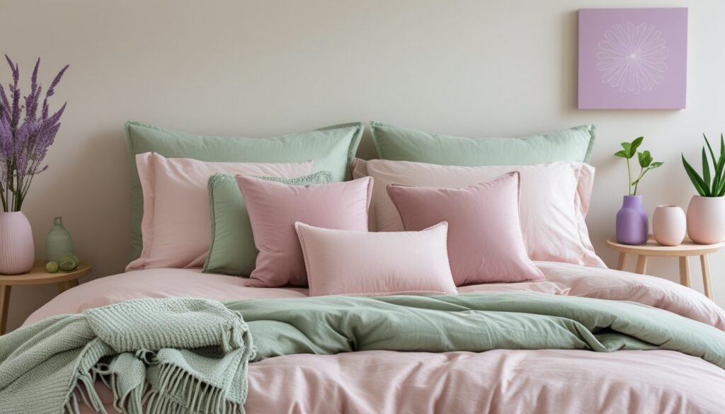 Pastel colors like blush pink, sage green, or light lavender enhance the charm of an aesthetic bedroom. Pairing pastels with neutral tones prevents the space from feeling too bold. Bedding, curtains, and wall décor in muted shades maintain balance and harmony.