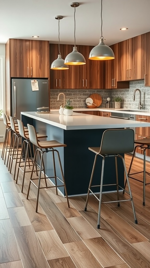 Choosing the right material for your kitchen island bar stools can really change the vibe of your space. In the image, you can see a sleek design that blends wood and metal, creating a modern look. This combination is not just stylish; it’s also functional.