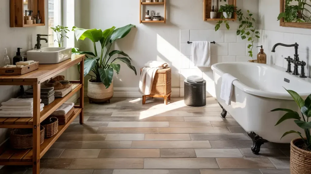 Wood-Look Bathroom Floor Tile Ideas for Warmth and Texture