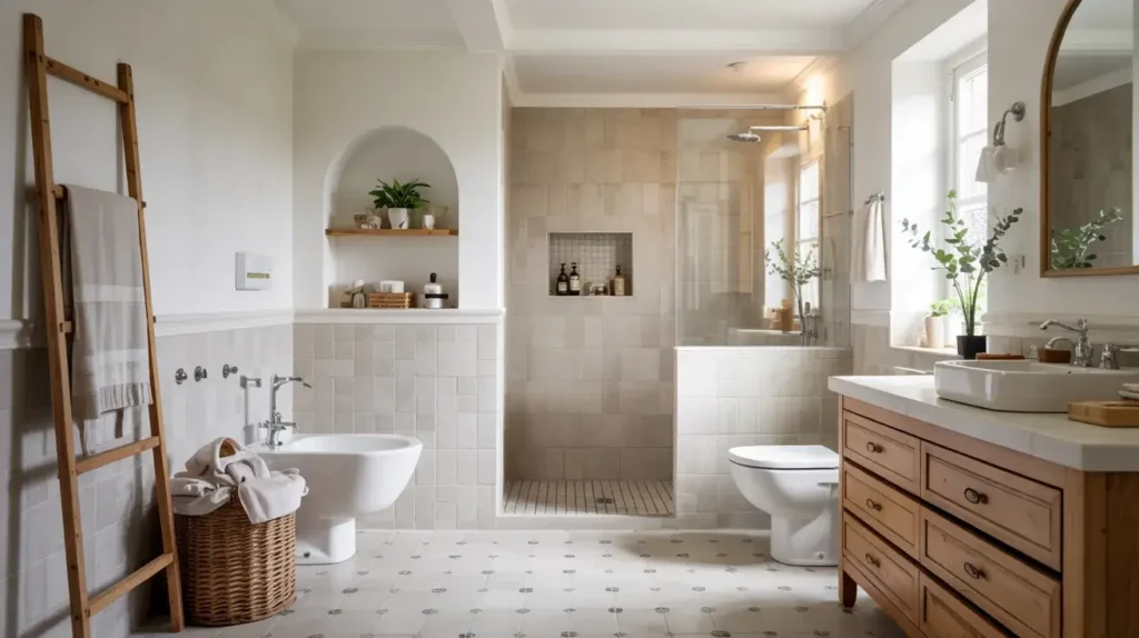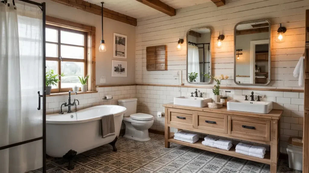 Wood-look tiles also fit beautifully in farmhouse bathrooms. They add that rustic warmth while being practical for wet areas. I especially love weathered or distressed wood looks that feel authentically aged.