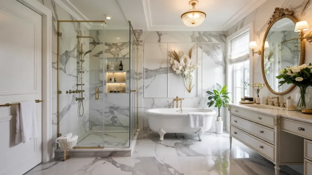Marble is the queen of bathroom materials. It’s luxurious, timeless, and makes everything look more expensive.