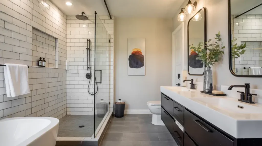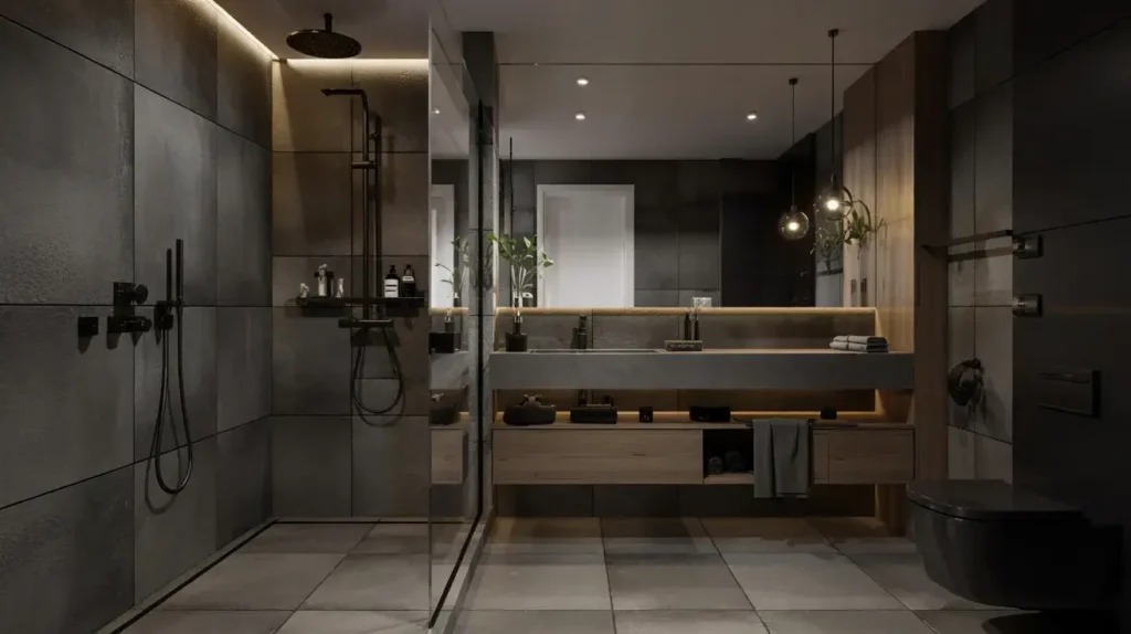 Larger tiles with fewer grout lines mean less scrubbing. Grout is where mildew loves to party, so minimizing it makes your life easier. This is why I push large format tiles so hard—they’re not just pretty, they’re practical.