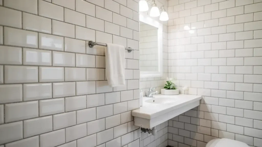 White grout versus colored grout is a huge decision with white tiles. I went with light gray grout because white grout can yellow over time and shows every speck of dirt. The subtle contrast from gray grout actually makes the white tiles pop while staying low-maintenance. Genius move, if I do say so myself.