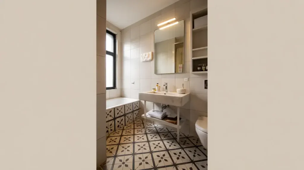 The trick with bold patterns? Use them strategically. I covered just the floor in patterned tiles and kept the walls simple white subway tiles. This prevents the space from feeling overwhelming while still delivering that wow factor. You want people to say “That’s stunning!” not “My eyes are confused.”