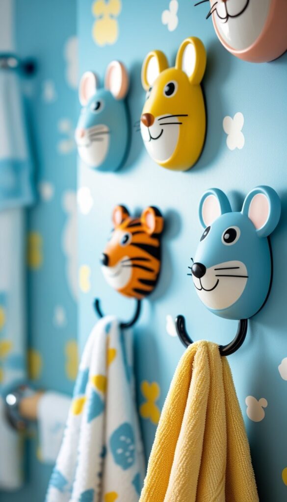 These hooks can also encourage kids to hang up their towels. With such cute designs, they might just enjoy tidying up a little more. Plus, they can easily fit into any animal-themed or colorful decor. Switch up your bathroom style with these delightful and functional accessories!