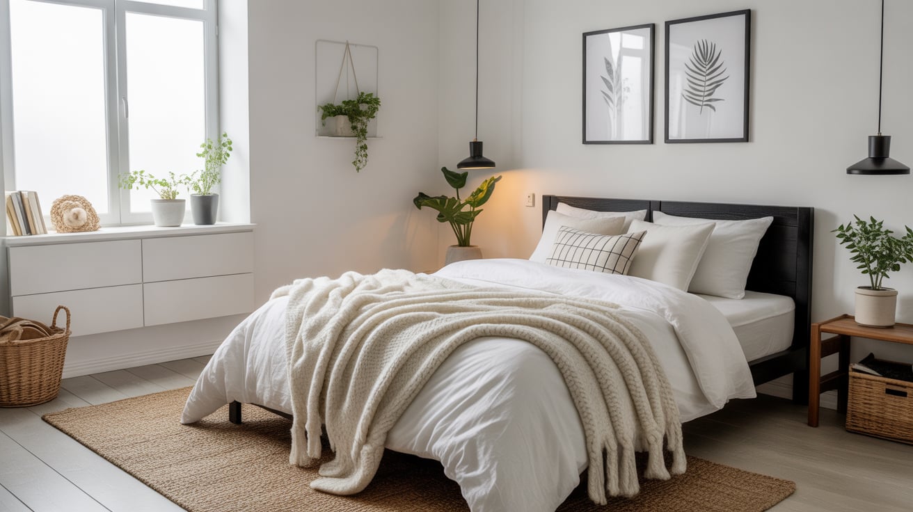 Clean lines and functional furniture are key. Add black-and-white prints, minimal wall art, and soft textures to create a stylish, airy, and serene space that feels modern yet cozy.