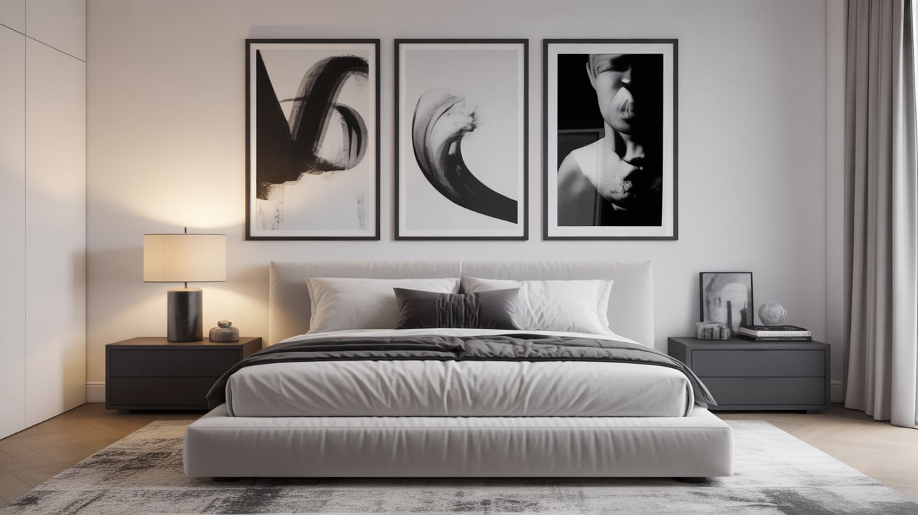 Showcase your artistic side with black-and-white artwork. Large prints, wall murals, or framed photographs can turn a simple bedroom into a creative space. Keep the furniture simple to let the art stand out.
