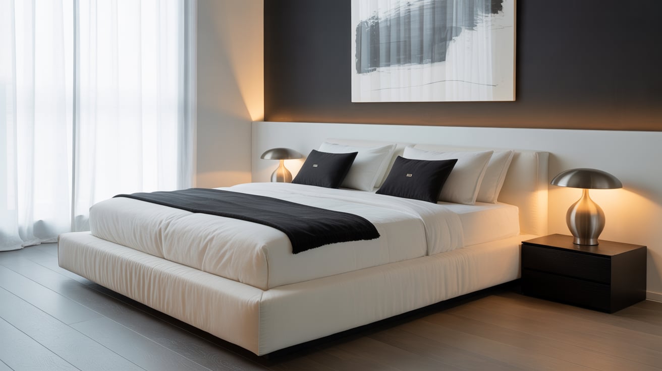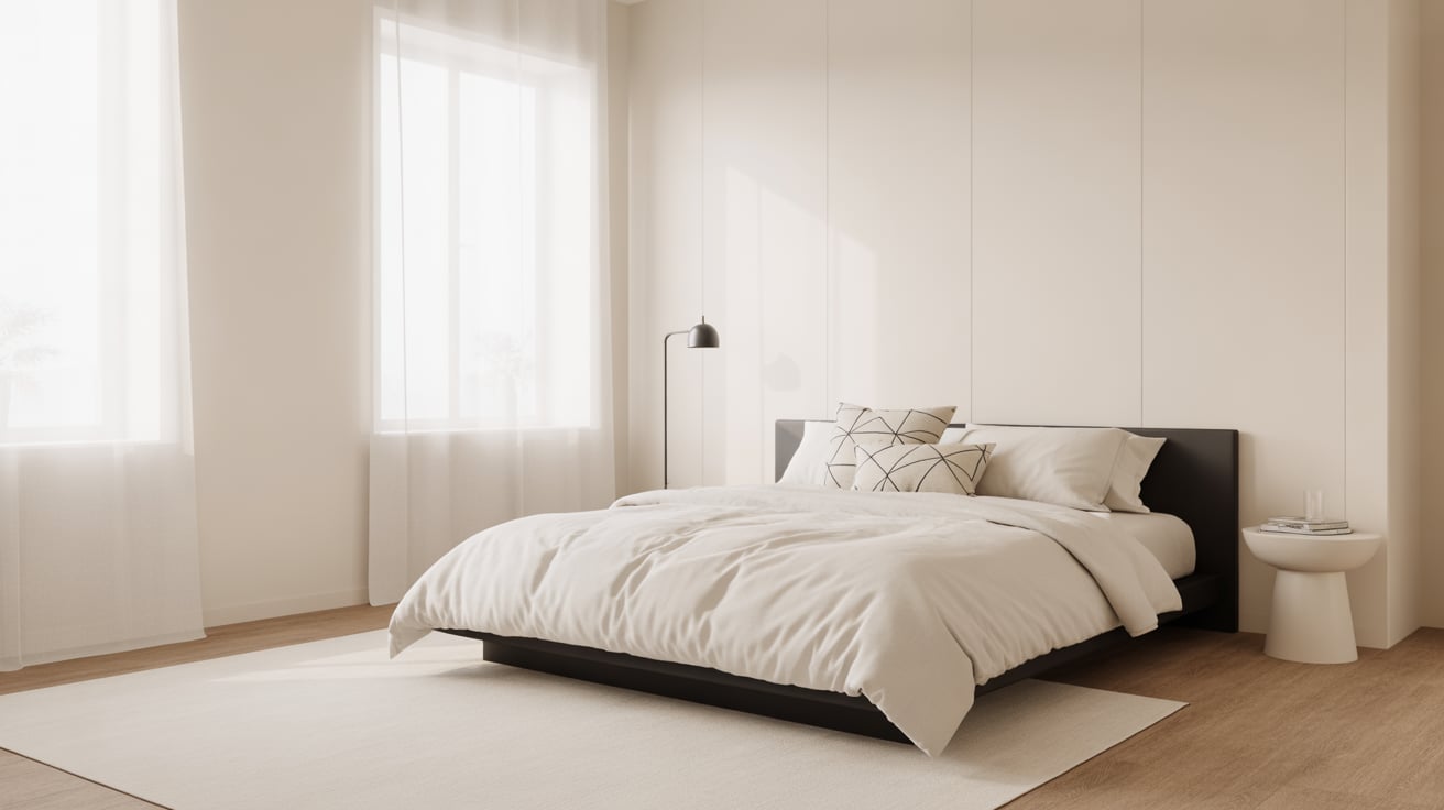Add soft lighting, natural fabrics, and a few plants to enhance tranquility. This bedroom style is perfect for anyone looking to relax, meditate, or sleep peacefully in a modern monochrome space.