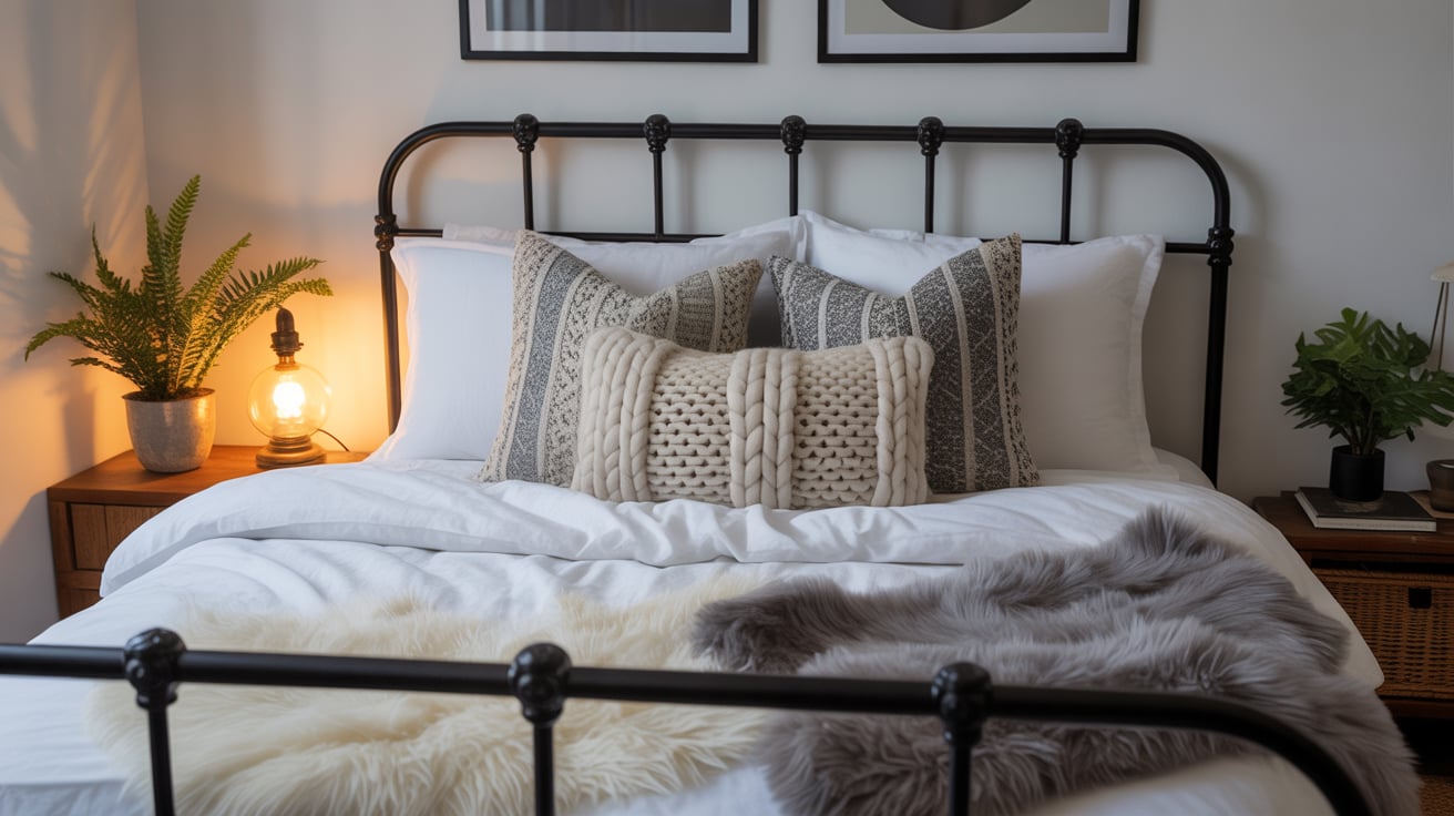 Introduce small touches of wood or warm metallics like gold or copper to soften the contrast. Even adding plush pillows or a comfy chair in the corner can transform your bedroom into a relaxing retreat.