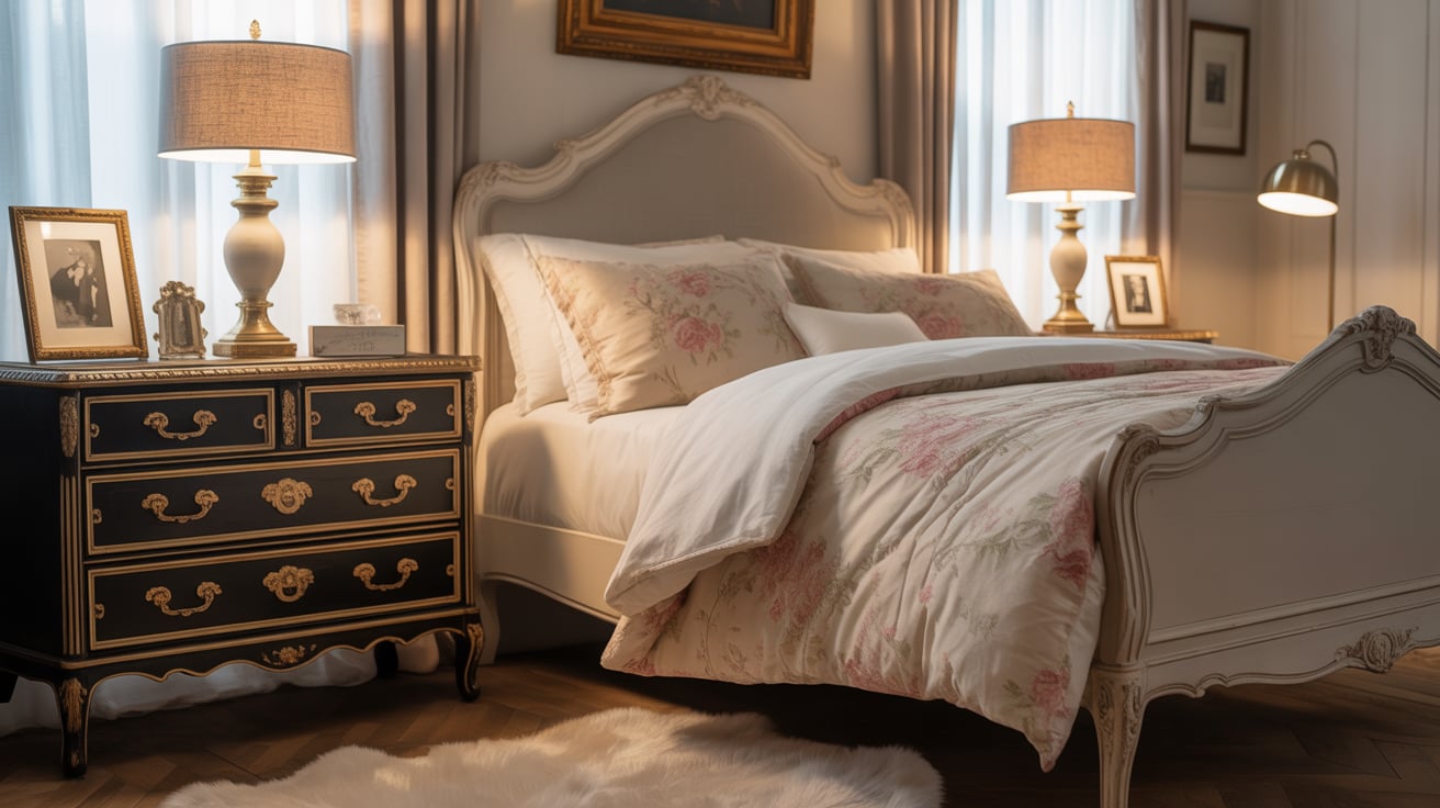 Combine vintage décor with modern bedding and accessories to keep the room fresh. This blend of old and new creates a sophisticated, timeless space that stands out.
