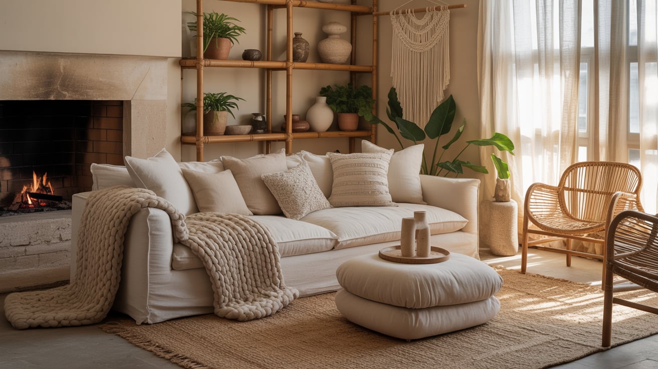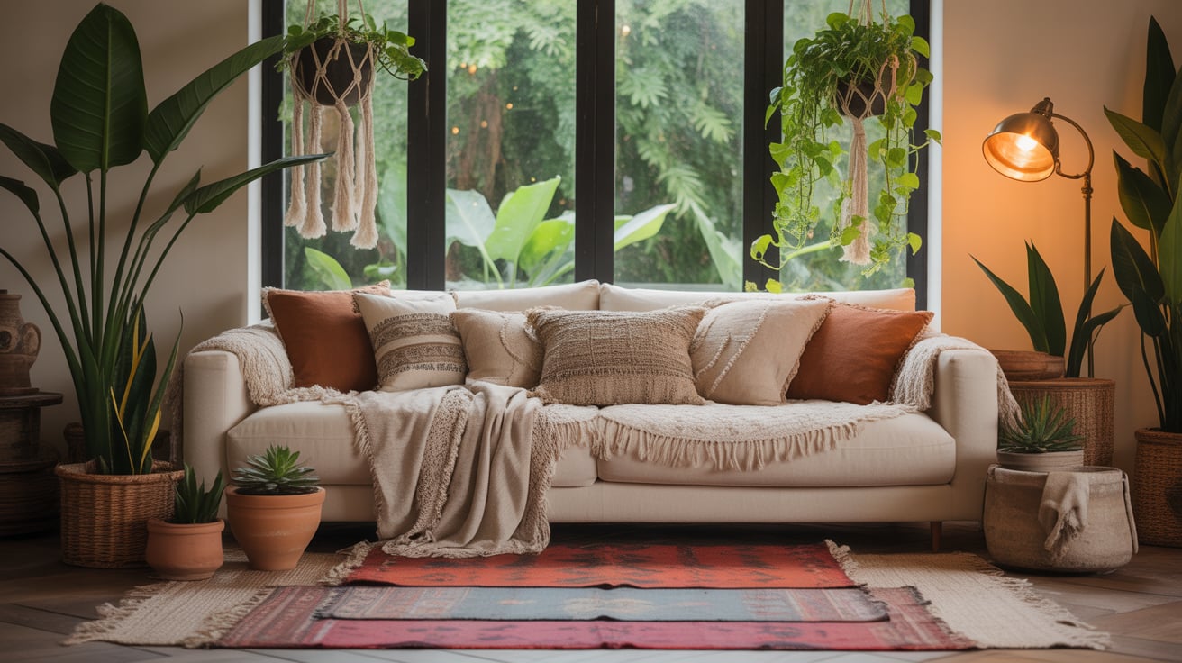 Layering pillows and draping throws casually over sofas adds a lived-in, comfortable feel, which is exactly what boho design is all about.