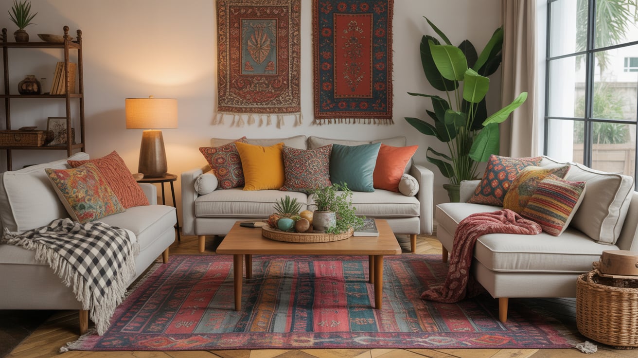 Global patterns add color, interest, and authenticity. Mixing them carefully keeps your room visually appealing without looking cluttered.