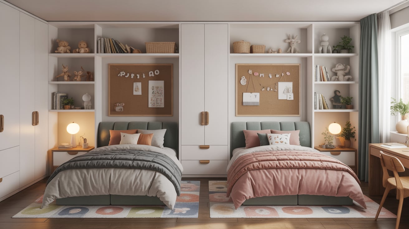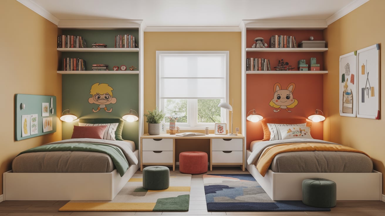 Adding a bulletin board, chalkboard wall, or photo display on each side can make it feel uniquely theirs without losing the room’s harmony.