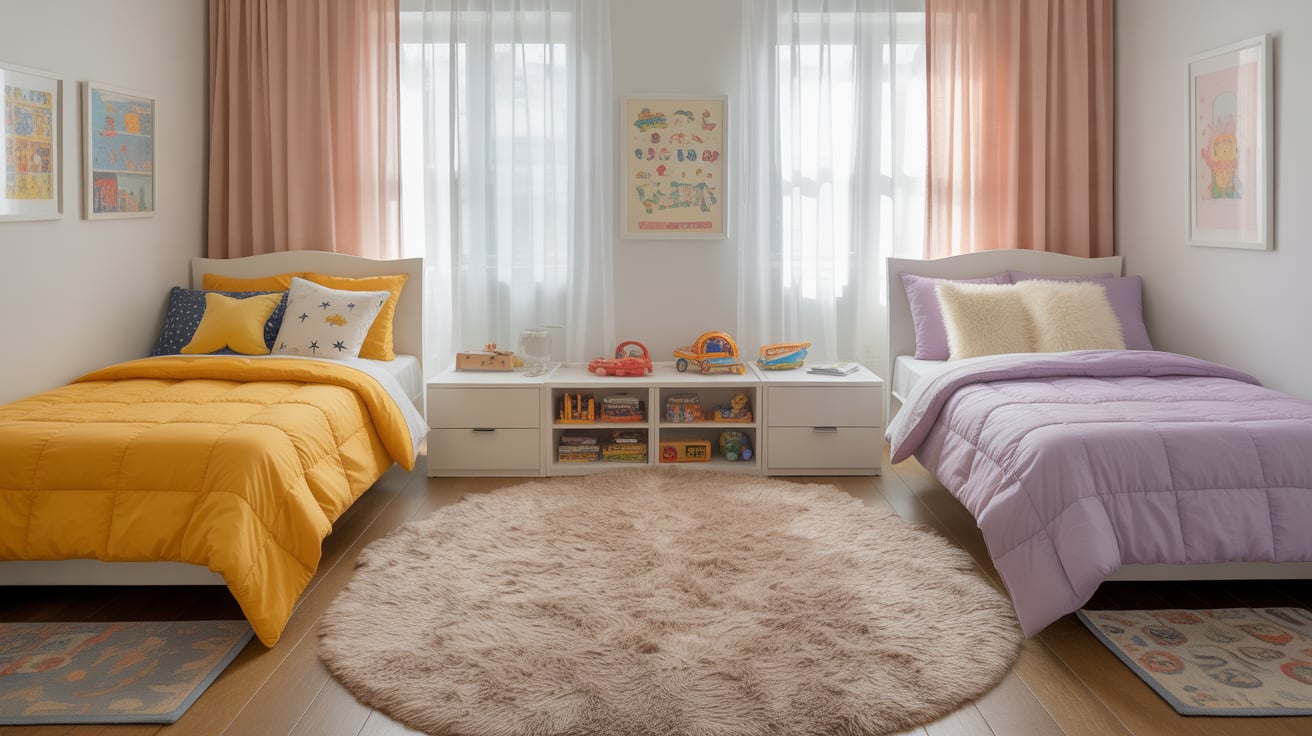 You can add pops of personality through bedding, wall art, or rugs that reflect each child’s interests. This way, the room stays cohesive but still feels personalized.