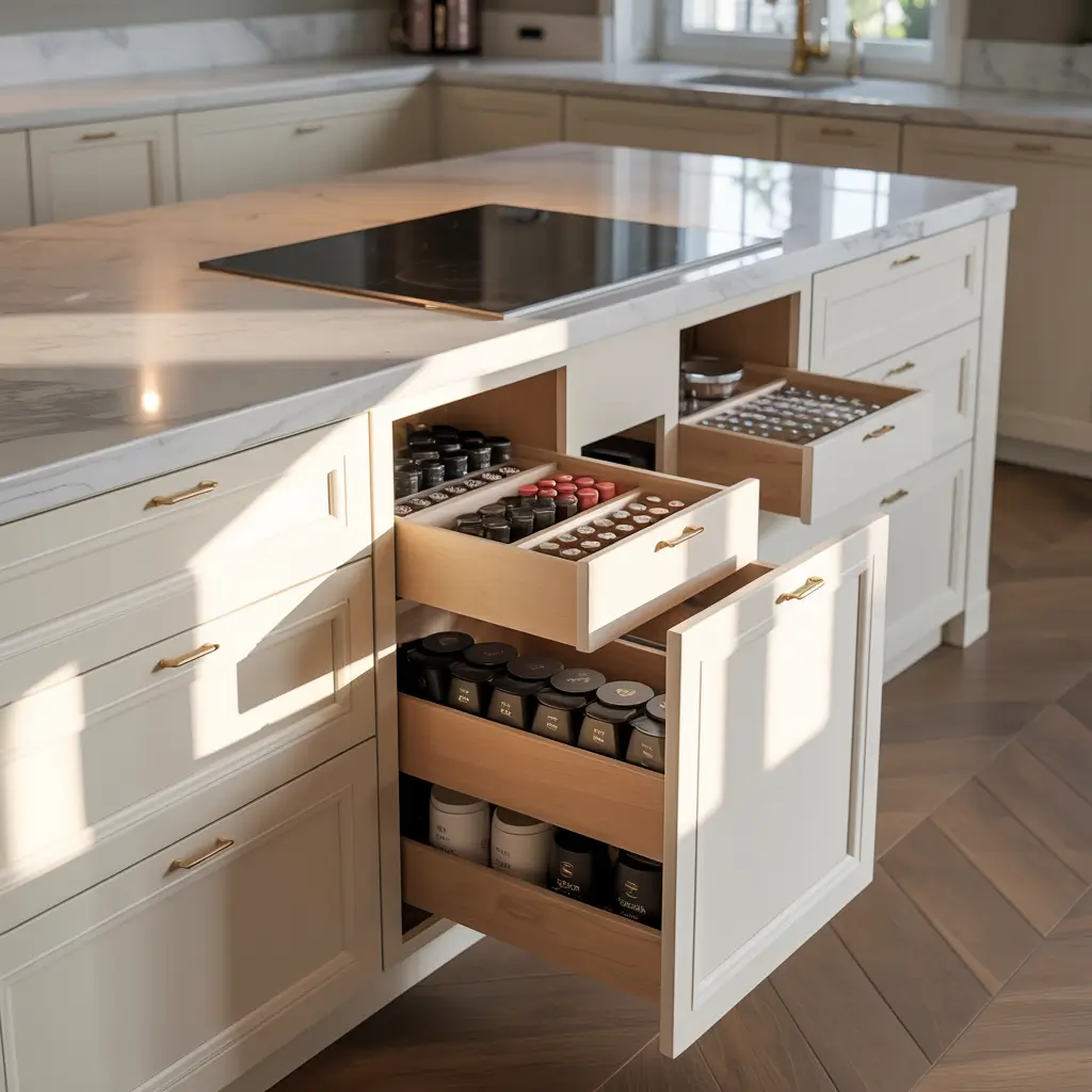 Pull-out drawers work exceptionally well in narrow spaces where cabinet depth is limited. A 12-inch deep drawer is way more functional than a 12-inch deep cabinet because you can actually see and reach everything inside.