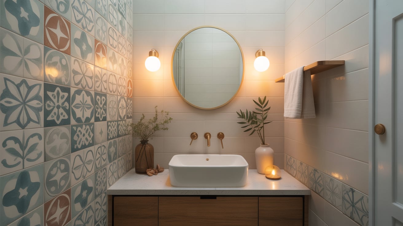 Small bathrooms don’t have to be boring! Patterned tiles on the floor or as a backsplash can add personality and charm without overwhelming the space.