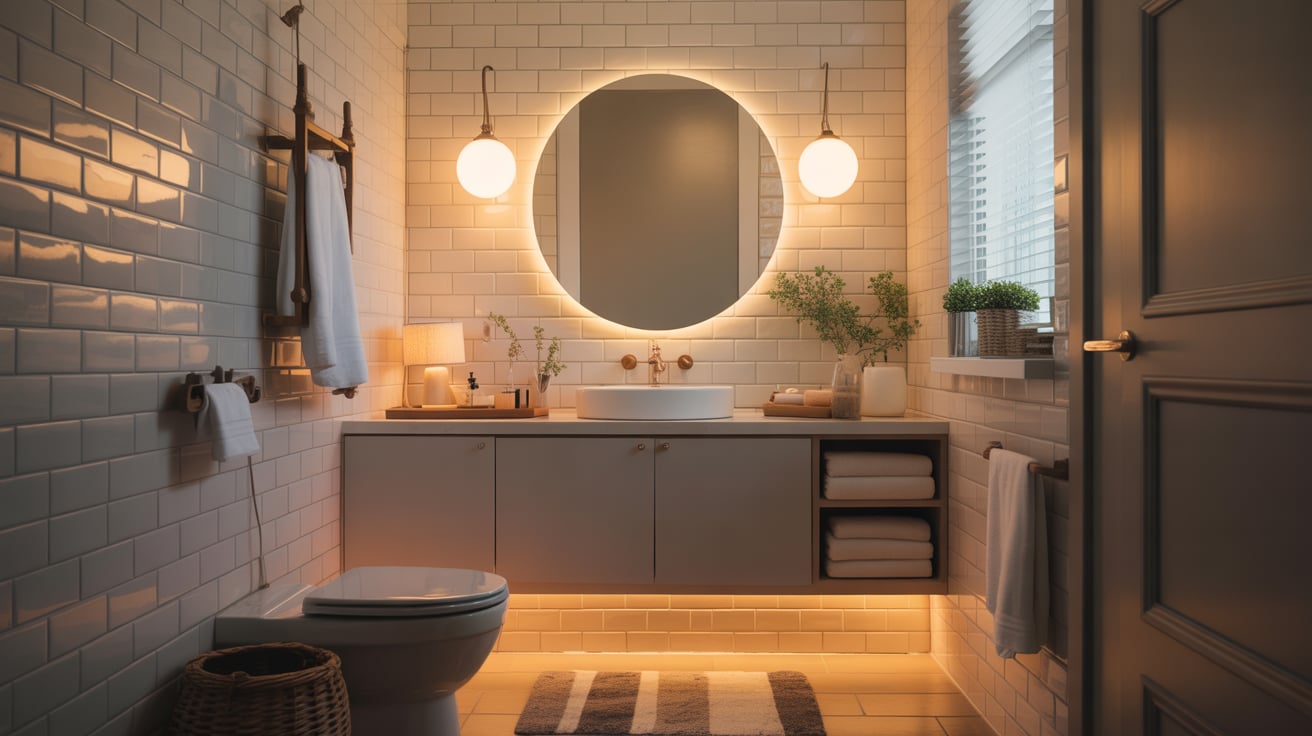 Consider adding wall sconces, LED strips under cabinets, or a small chandelier if space allows. Layered lighting gives your bathroom a soft, spa-like feel while keeping it functional.