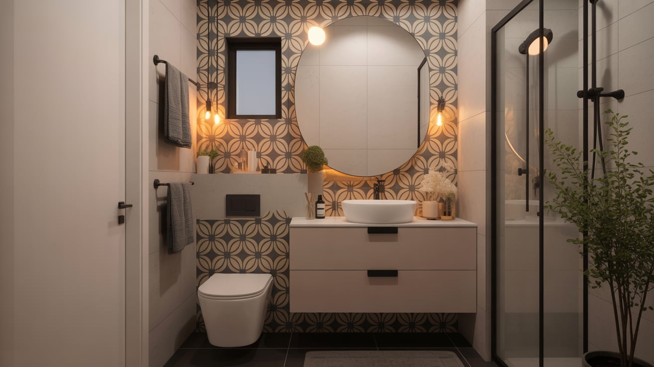 A feature wall in a small bathroom adds character without cluttering. Consider a wall with bold tiles, wallpaper, or a unique paint color.