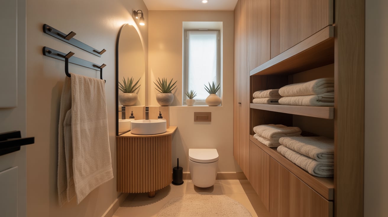 This approach keeps essentials within reach while maintaining a clean, open feel. It also gives your bathroom a stylish, organized, and cozy look.
