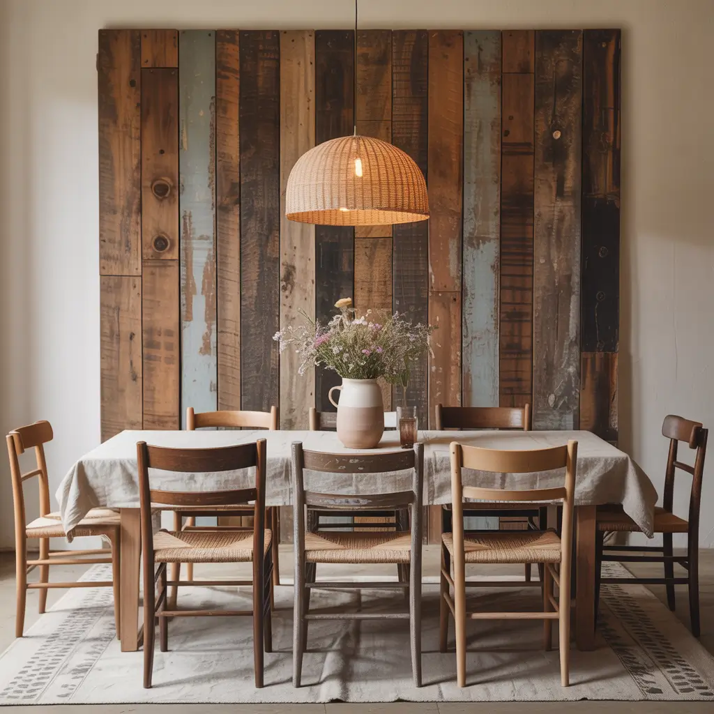 Rustic doesn’t have to mean rough or unrefined. Done thoughtfully, a rustic wood panel wall brings warmth and organic texture while maintaining elegance. I added reclaimed wood planks to one wall, and the depth and richness transformed my entire dining experience.