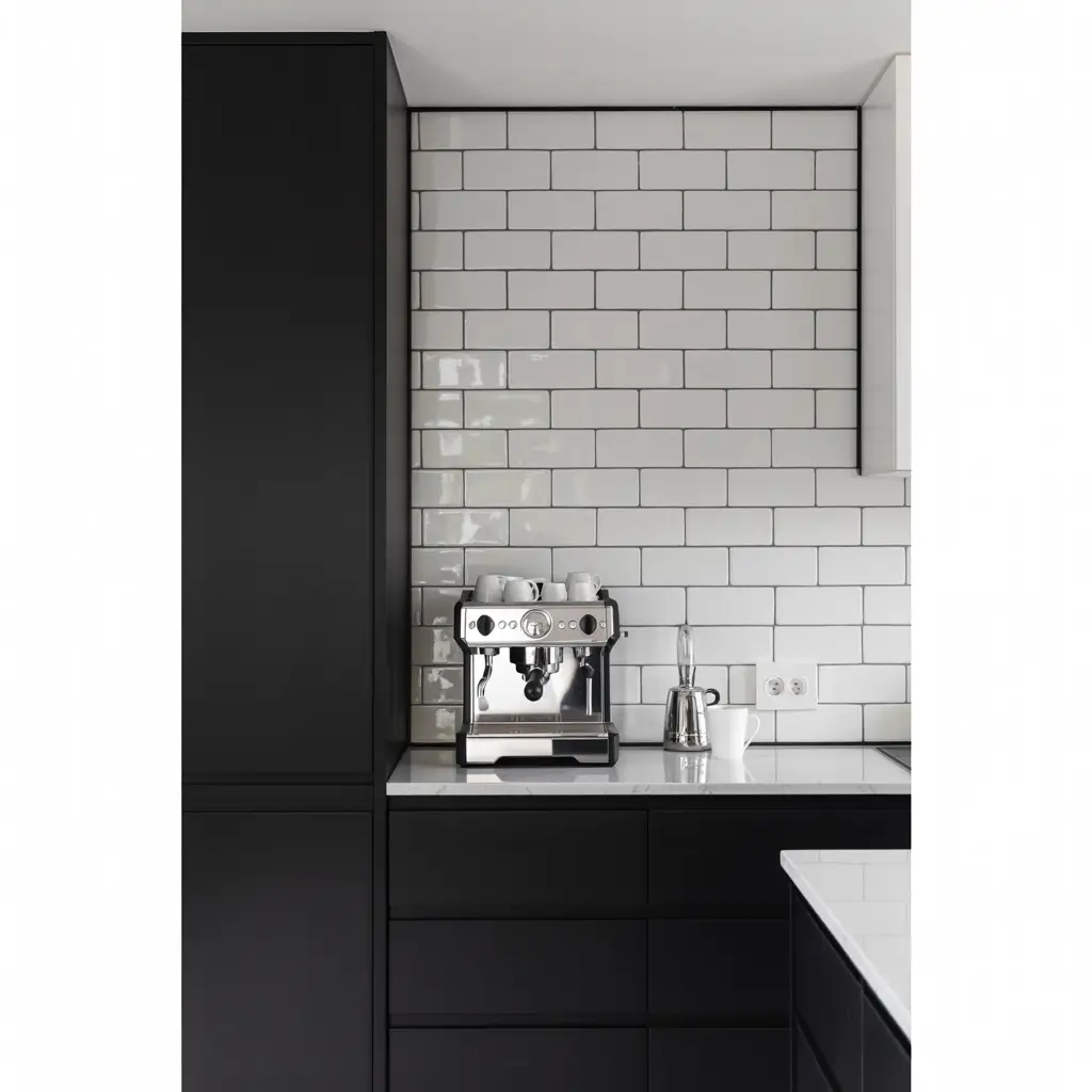 Clean, crisp, and effortlessly cool—that’s the black and white aesthetic. If your place already leans modern, this coffee bar style will fit right in.