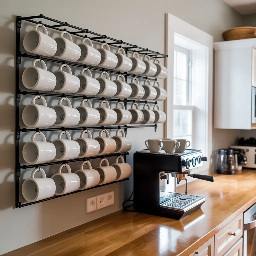 I installed a simple rail system with hooks on my kitchen wall and hung my favorite mugs. Every morning, I choose a mug based on my mood, and the wall display makes me genuinely happy to look at. Plus, it freed up an entire cabinet for other storage.