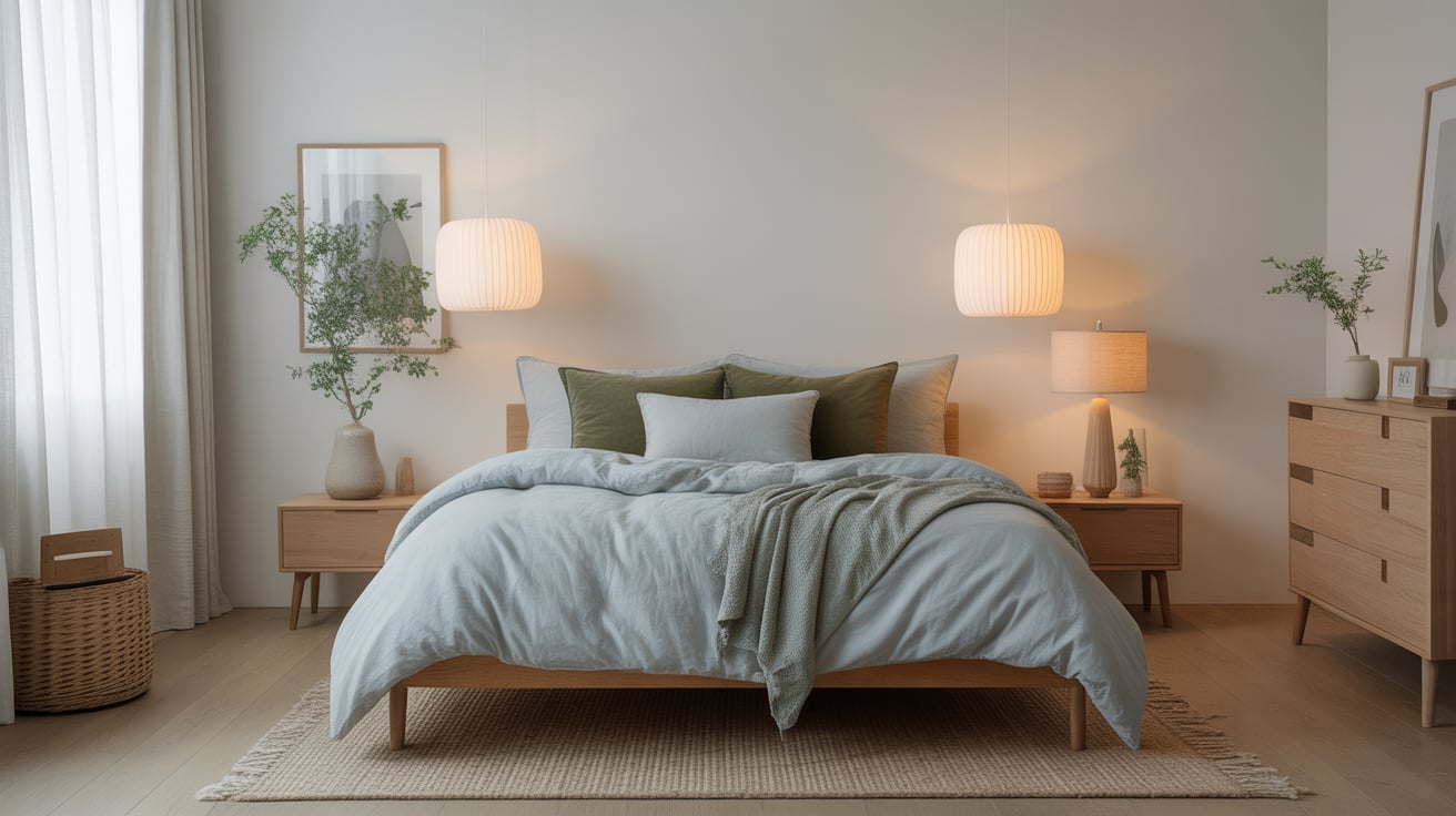 Add soft textiles, light wooden furniture, and simple decor for a clean look. This creates a space that feels peaceful, balanced, and clutter-free.