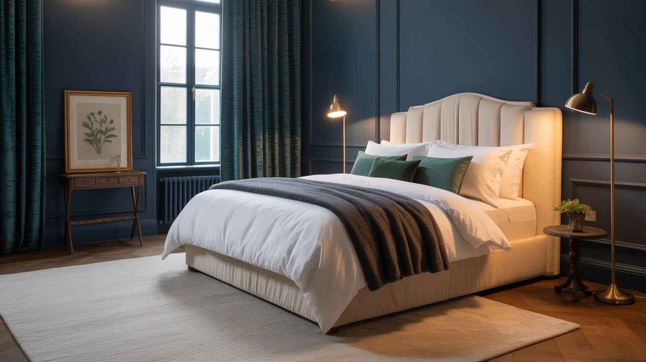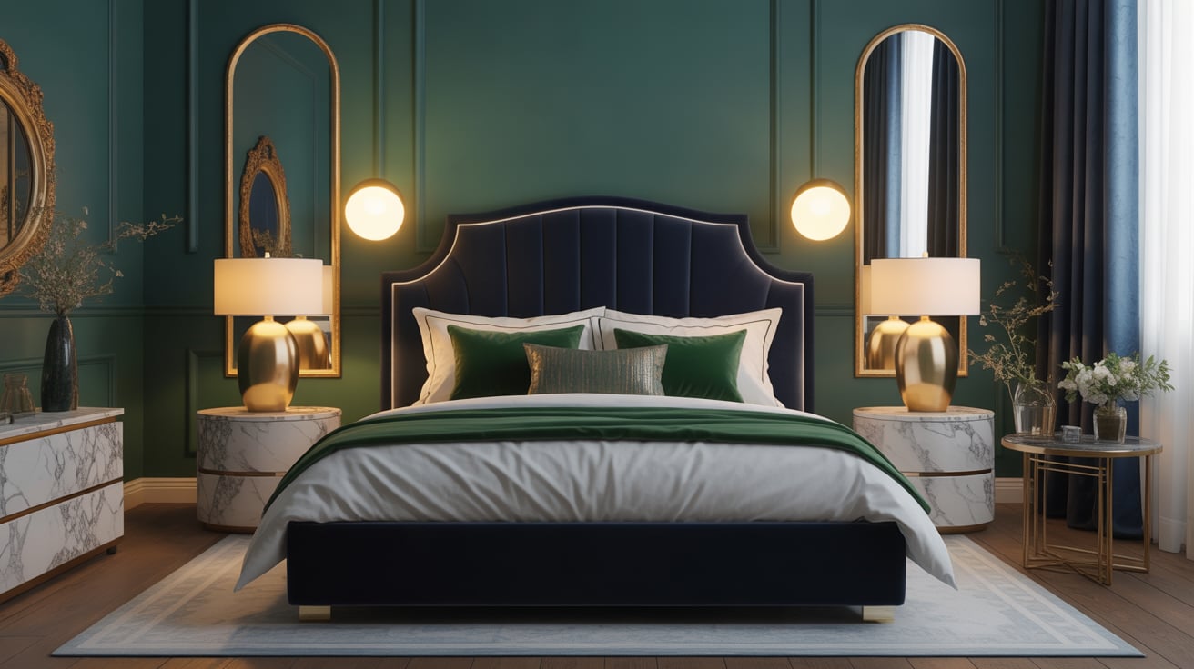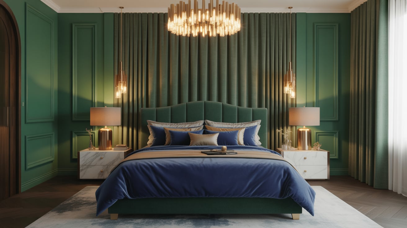 Use these colors in bedding, curtains, or accent chairs, and balance them with gold or brass details. This ensures your space feels sophisticated without being too heavy.
