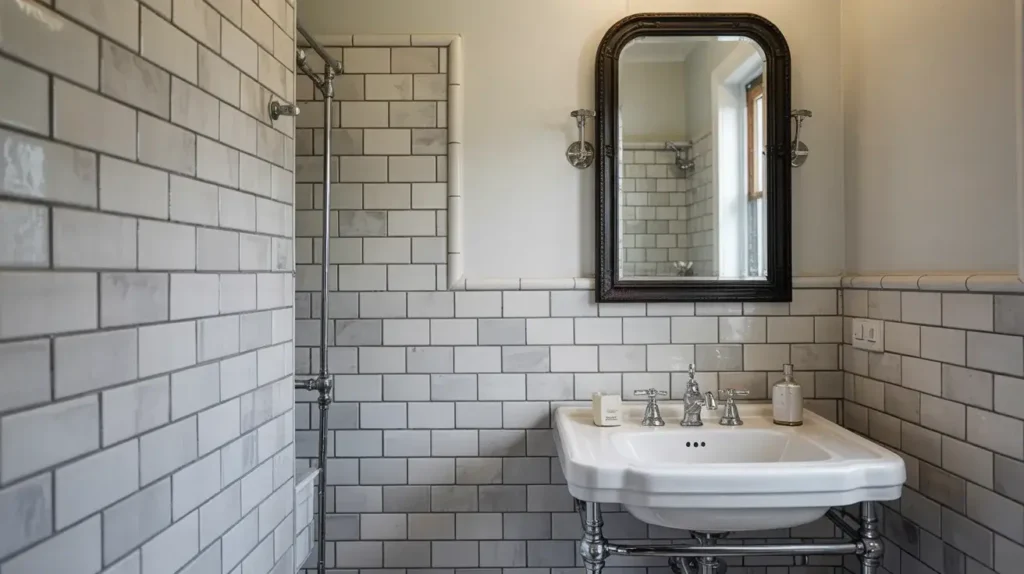 Grey subway tiles offer all that classic appeal with a contemporary twist. The standard 3×6 inch size works perfectly for most bathrooms, but I’ve seen 4×12 inch versions that look super sleek and modern.