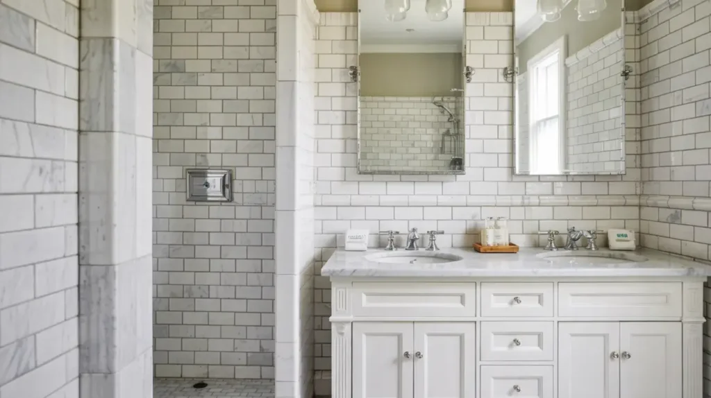 Don’t forget about texture variations. Mix glossy white tiles with matte grey tiles, or combine smooth surfaces with textured ones. This creates dimension that photographs can’t even capture properly—you have to experience it in person.