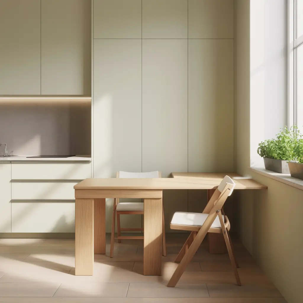 - Wall-mounted drop-leaf tables that fold down when not in use