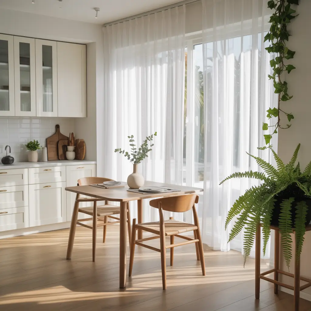 The dining area benefits from light-colored furniture or glass tables that don’t visually weigh down the space. I swapped my dark wood dining set for a light oak table and white chairs, and it felt like I added 20 square feet. Sometimes the transformation is just about getting out of your own light.