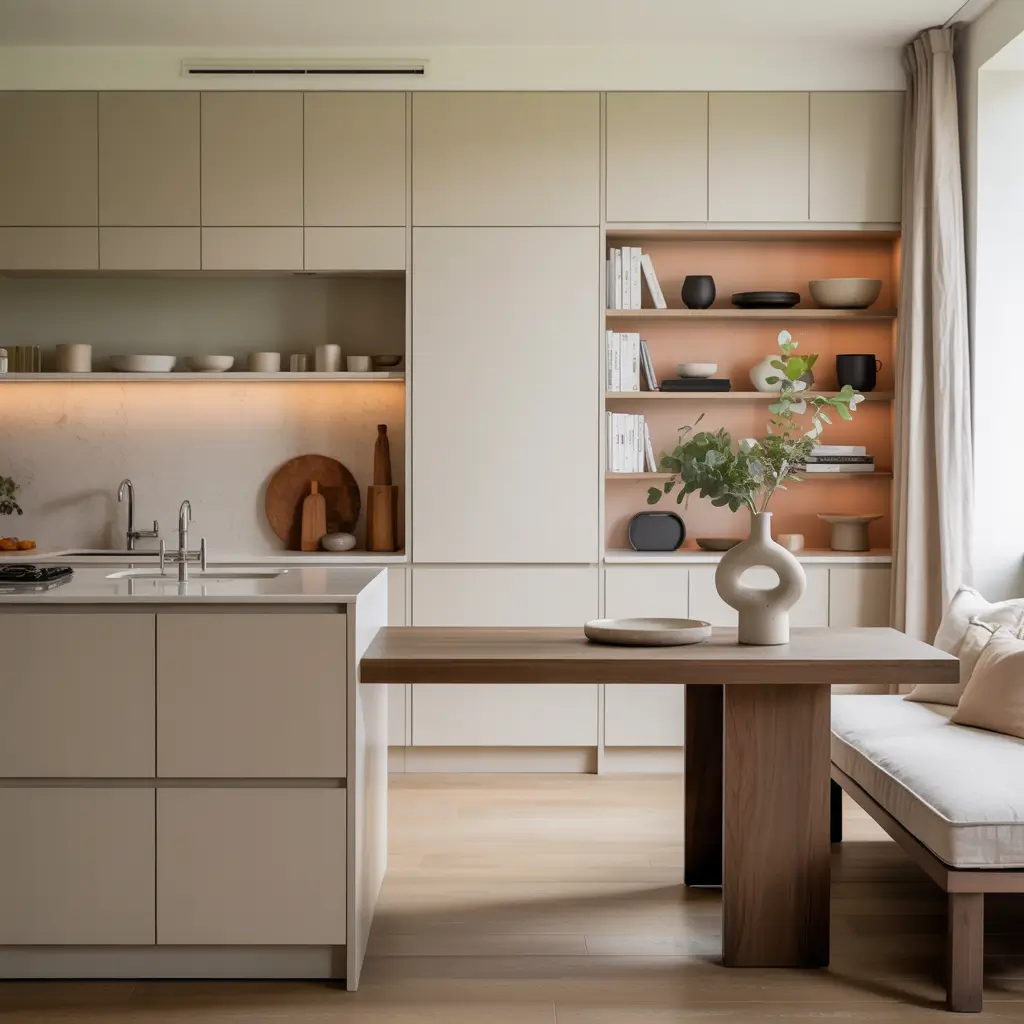 For the dining area, consider a buffet or sideboard with closed storage for linens, serving pieces, and all those random items you need occasionally. Open shelving looks great but requires constant maintenance. I prefer closed cabinets for actual storage and open shelves only for things I genuinely want to display.