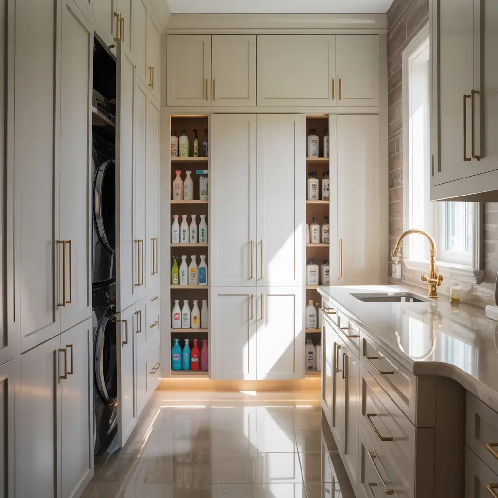 Tall Pantry-Style Laundry Storage Cabinets