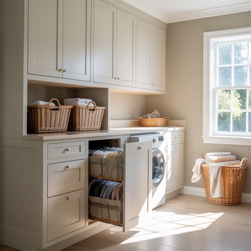 Cabinets with Pull-Out Laundry Hampers