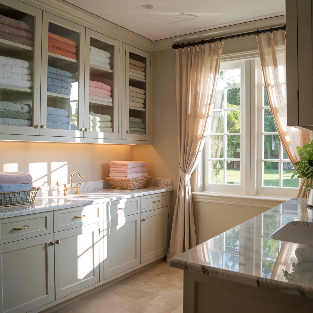 Glass-Front Laundry Room Cabinets