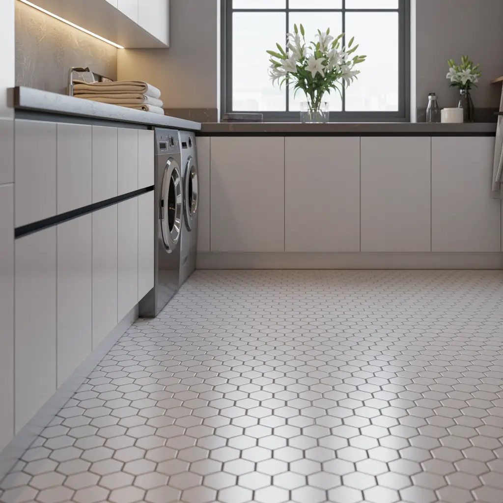 Glossy tiles look stunning in photos, but matte finish tiles are the practical heroes of laundry rooms. Matte surfaces hide water spots, soap scum, and footprints way better than shiny finishes. Trust me on this—I learned the hard way with glossy bathroom tiles that show every single water droplet.