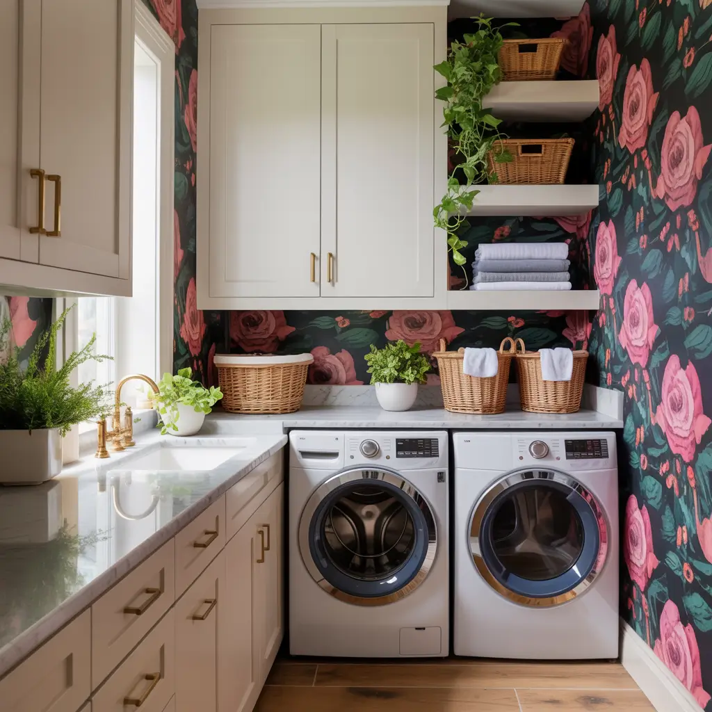 Ever thought about bringing a garden into your laundry room? Sounds crazy, but bold floral wallpaper completely changes the game. I’m talking oversized blooms, vibrant colors, and patterns that make you forget you’re sorting darks from lights.