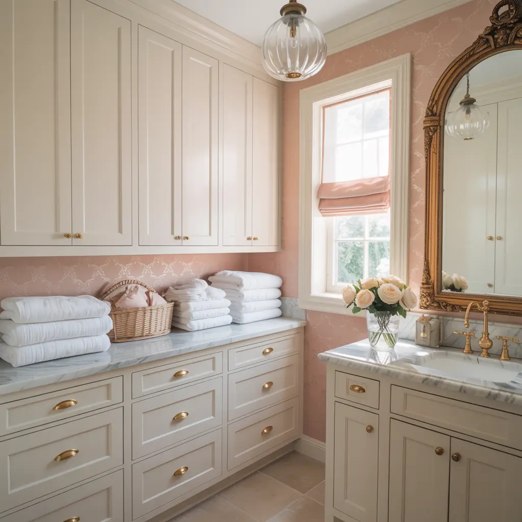 Pastel wallpaper creates the sweetest, most cheerful laundry rooms. Soft pinks, mint greens, pale yellows, or lavenders bring this gentle, happy energy that makes mundane tasks feel lighter.
