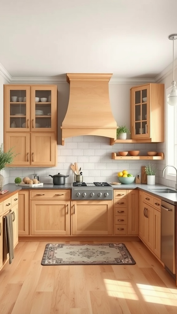 This image showcases the beauty of maple cabinets, featuring a clean layout and functional design. The light wood tones complement the overall aesthetic, making the kitchen feel open and inviting.
