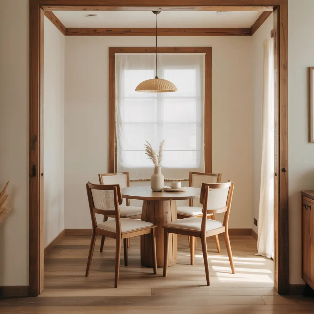 - Soft textiles: Add linen curtains, upholstered chairs, or seat cushions in natural fabrics