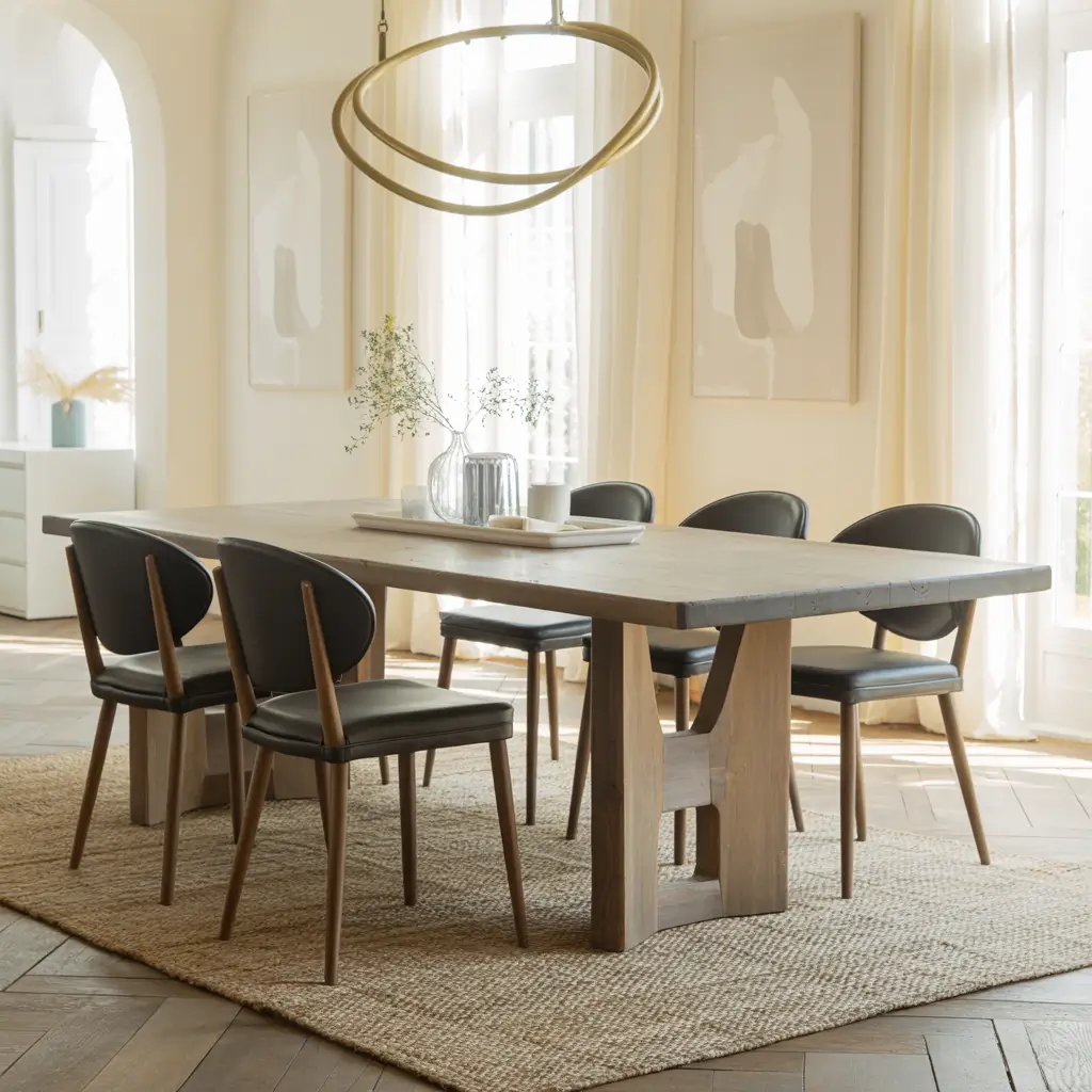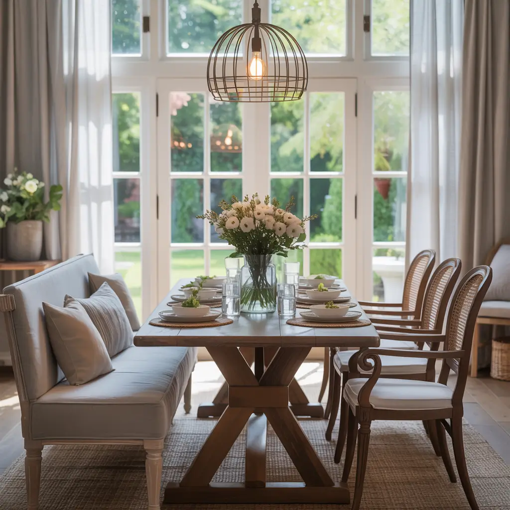 Even in larger dining spaces, you can create that cozy feeling by defining the area properly. I use an oversized area rug to anchor my dining set—it immediately makes the space feel more intimate and pulls everything together visually. Area rugs in neutral tones with subtle patterns work beautifully because they add texture without overwhelming the space.
