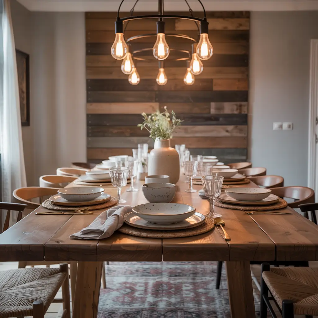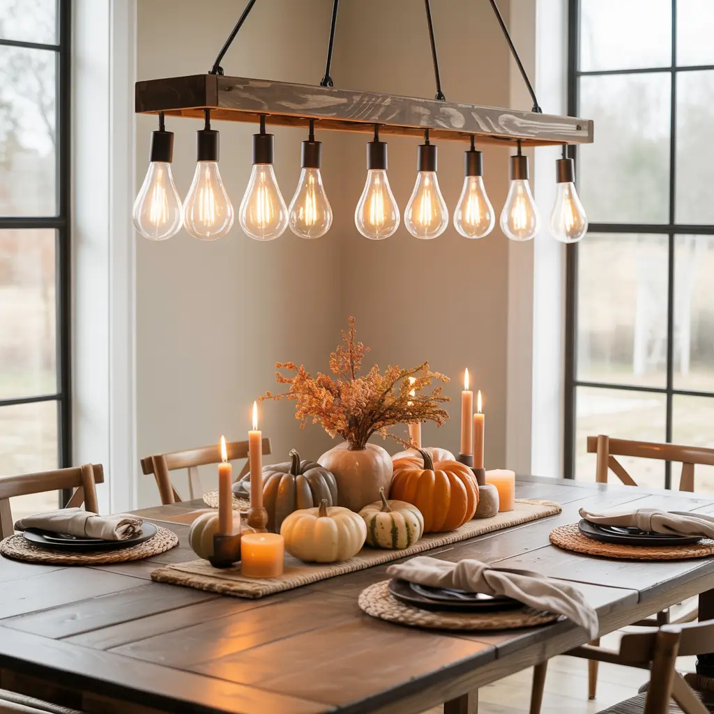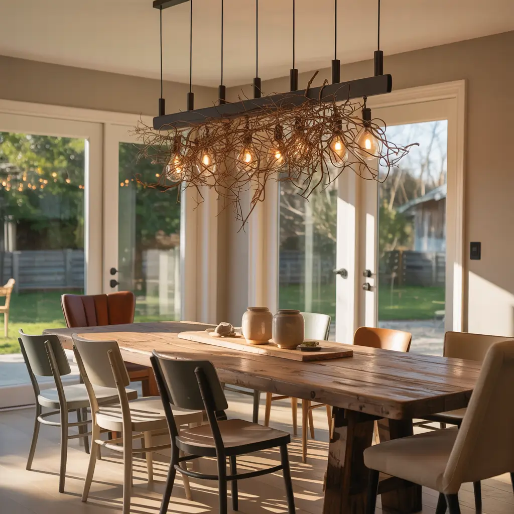 - Style: Mix modern and rustic elements—maybe a contemporary shape with Edison bulbs