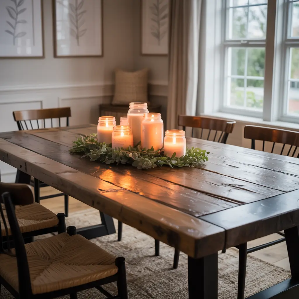 - Mason jar centerpieces: Classic farmhouse elements that work year-round with different fillers