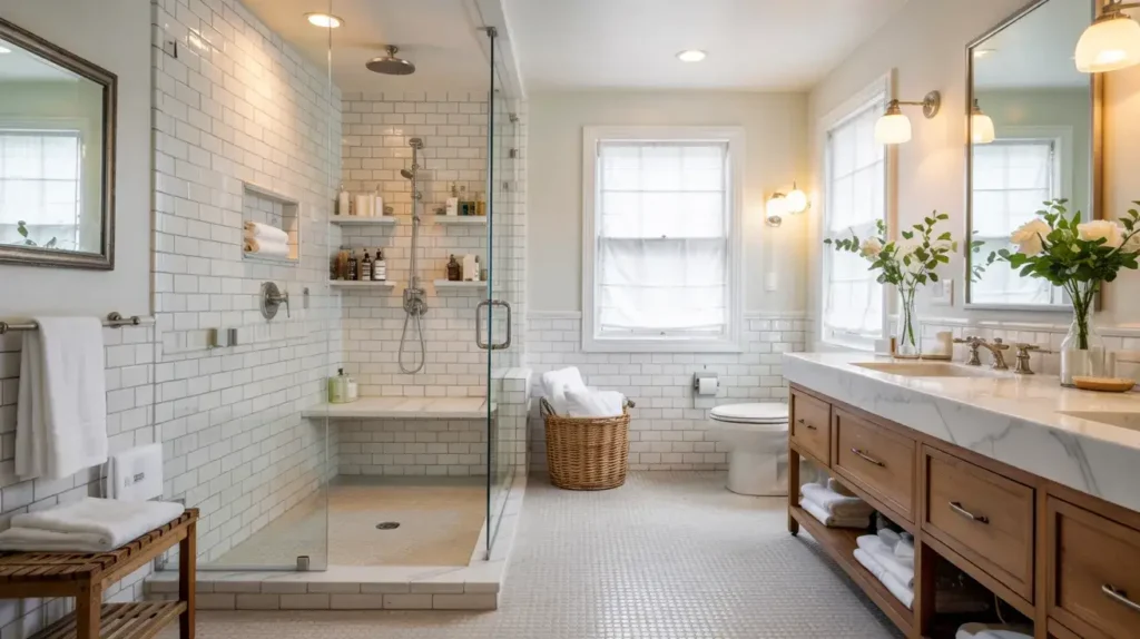 Sweep or vacuum regularly to prevent dirt from settling into those grout lines. I know it sounds basic, but this simple step prevents 90% of future headaches. A quick wipe-down after showers also stops water spots and soap scum buildup.