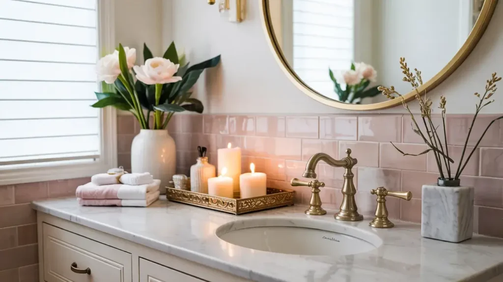 Pink Tile Bathroom Vanity Styling Ideas