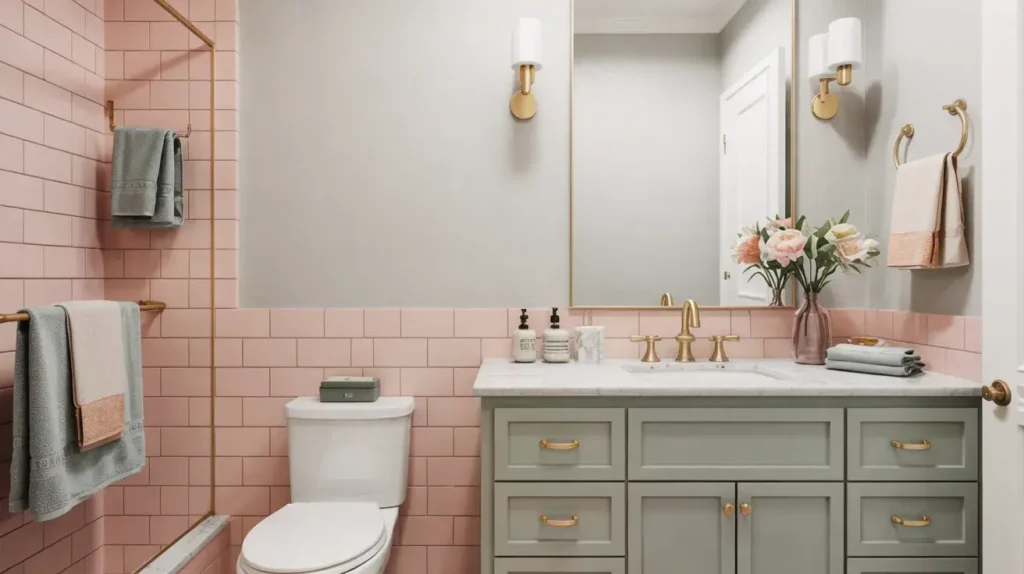 Pair dusty rose with deeper, moodier colors rather than pastels. Think charcoal, deep teal, chocolate brown, or even black. These combinations create depth and prevent your bathroom from feeling one-dimensional.