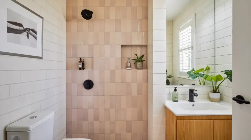 The key to nailing a modern pink tile look is choosing the right shade and finish. Go for matte or satin finishes rather than glossy—they feel more current and less candy-coated. Dusty pinks, terracottas, and even deeper rose tones work way better than bubblegum shades here.