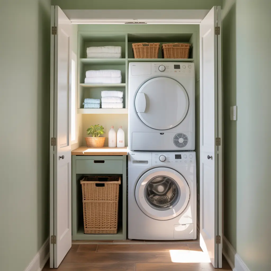 Laundry closets are the ultimate challenge because you’re working with literally just a closet. No room for creative layouts—you’ve got what you’ve got, and that’s usually just enough space for machines and maybe a hamper if you’re lucky.