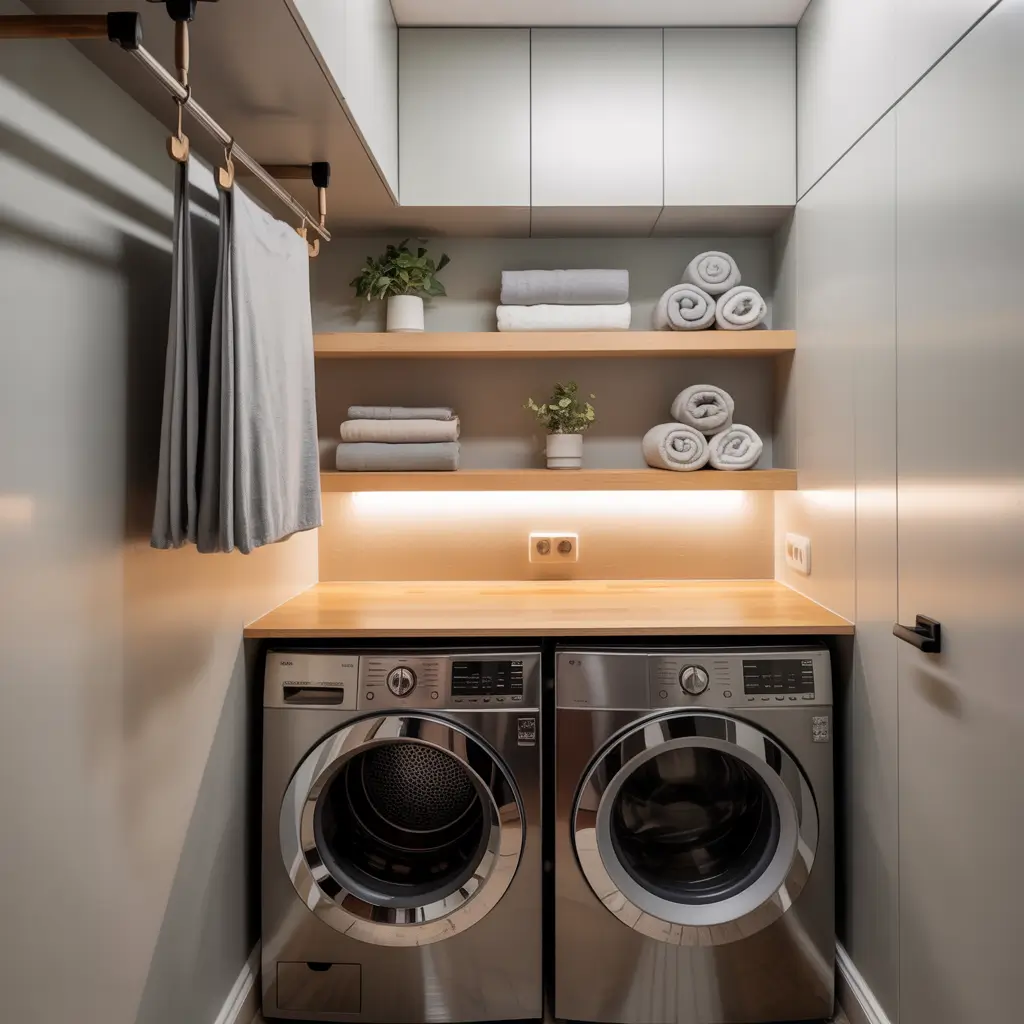 Ever played Tetris? Because that’s basically what designing a small laundry room feels like. You need to think vertically, horizontally, and sometimes even diagonally to make everything fit without losing your mind.